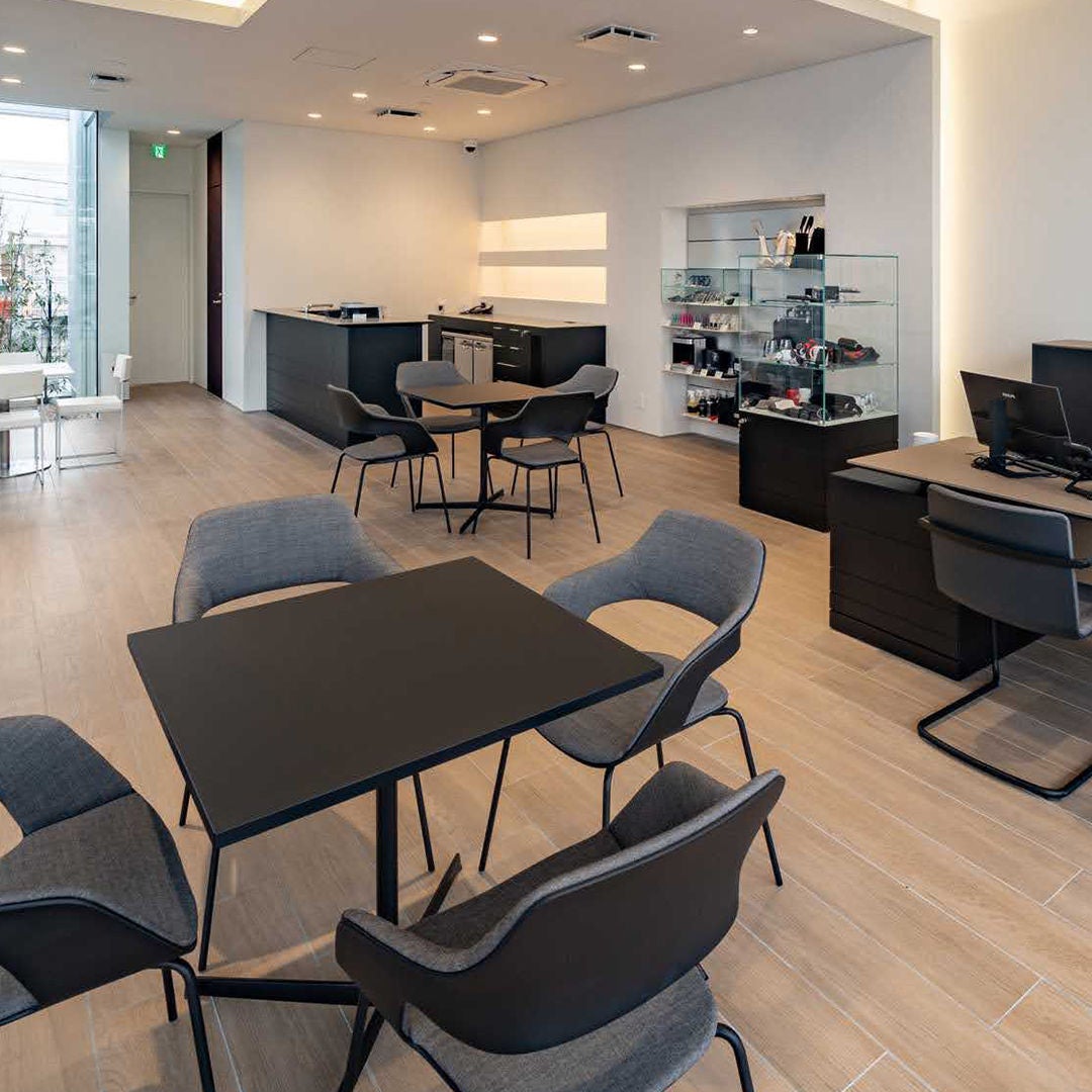 アウディのCI/CDに基づき設計されたカスタマーラウンジは独自の世界観を表現しており、屋外に12台の認定中古車を展示します。